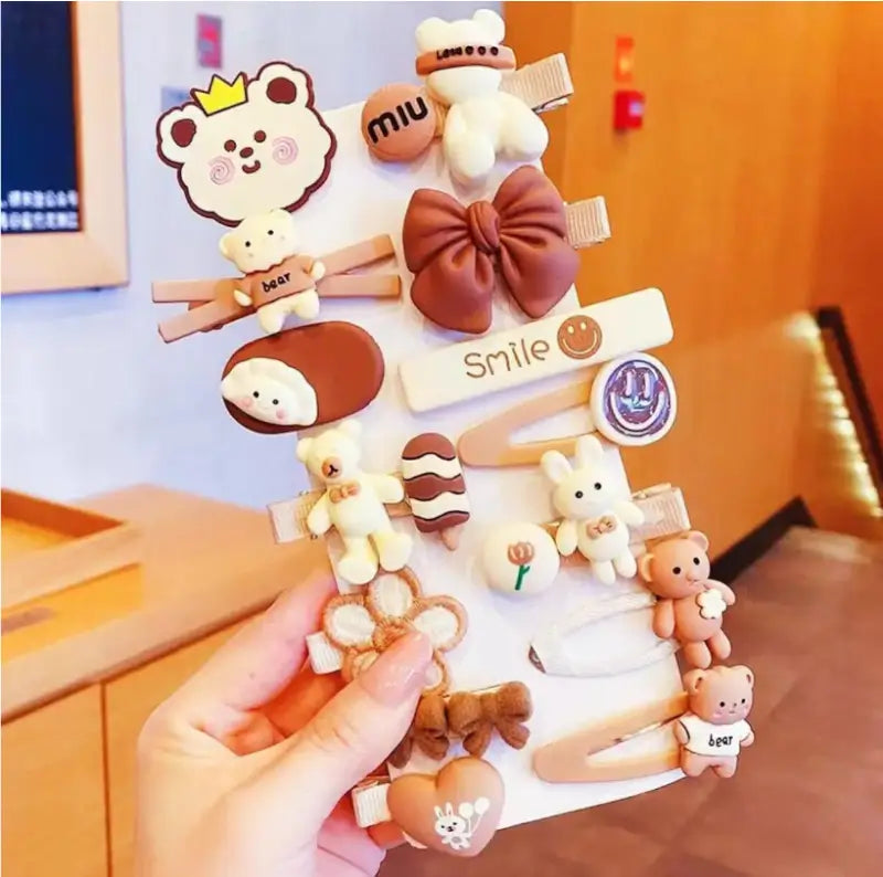 14 Pc Teddy Bow Hair Clips – Small Multicolor Rubber Clips ( default, Standard )
