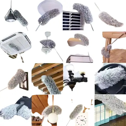 Bendable & washable microfiber duster for high ceiling fans, blinds, and furniture. Detachable, flexible, and electrostatically charged for efficient dust cleaning.